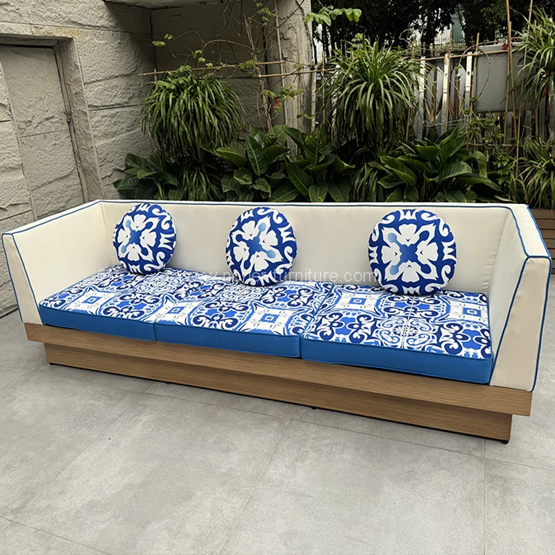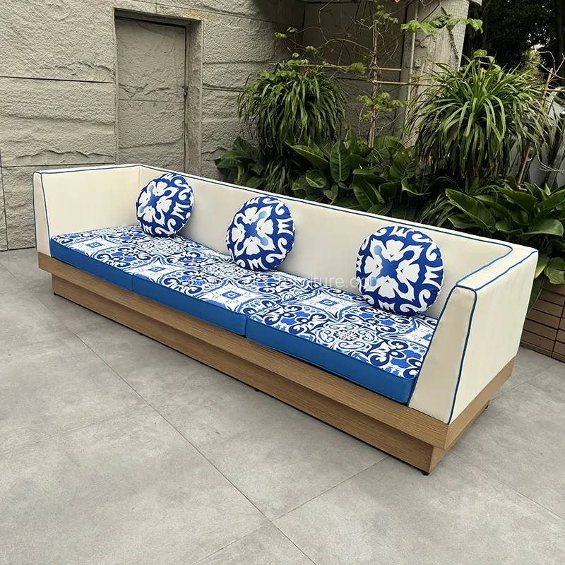 • ఆధునిక బహిరంగ అల్యూమినియం ఫ్రేమ్ బ్రష్ చేసిన కలప ధాన్యం సోఫాఆధునిక బహిరంగ అల్యూమినియం ఫ్రేమ్ బ్రష్ చేసిన కలప ధాన్యం సోఫా